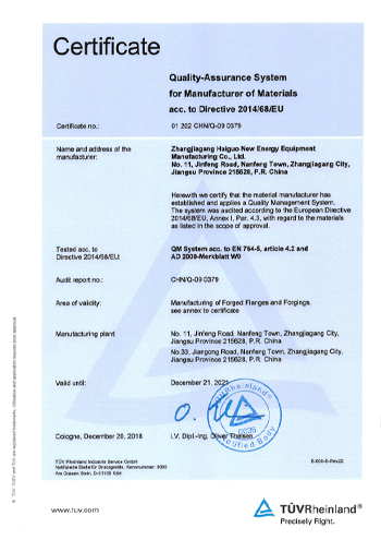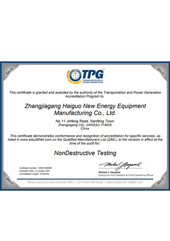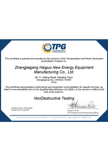 公司取得了美國(guó)ABS、法國(guó)BV、中國(guó)CCS、挪威DNVGL、韓國(guó)KR、英國(guó)LR、日本NK、意大利RINA等全球八大船級(jí)社的工廠認(rèn)證證書,建立了完善的產(chǎn)品質(zhì)量管理體系。先后獲得了美國(guó)API20B資質(zhì)證書、API6A資質(zhì)證書、APIQ1體系證書、TPG的NDT認(rèn)證證書、TPG 熱處理認(rèn)證證書、歐盟PED等認(rèn)證證書,同時(shí)也通過了一些國(guó)際客戶具有高度專業(yè)要求的資格認(rèn)證。